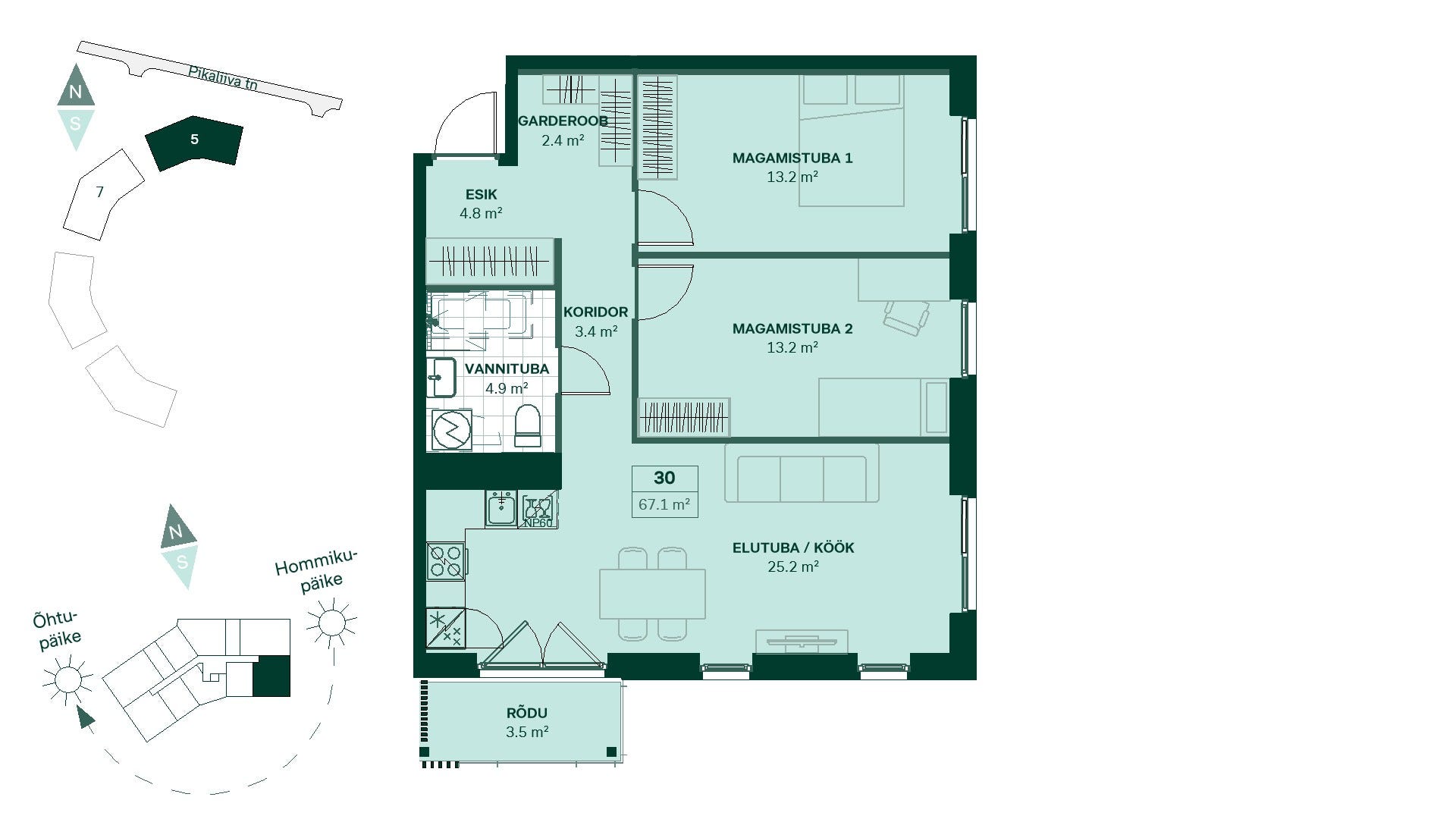 Pikaliiva 5-30, 3 tuba, 67,1 m², Hind 279 990 €