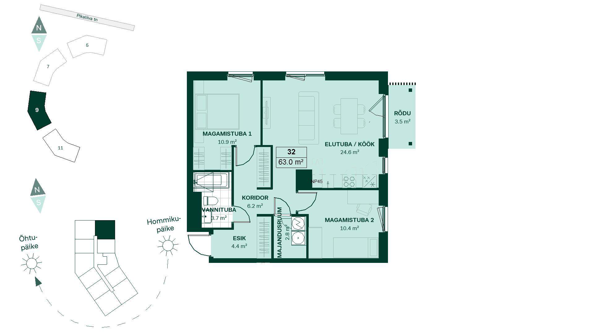 Pikaliiva tn 9-32, 3 tuba, 63 m², Hind 270 990 €