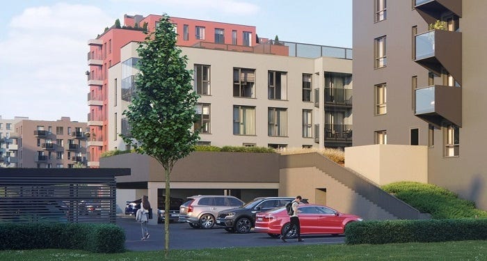 Korteri hinnale lisandub parkimiskoha maksumus vastavalt valitud asukohale: autokoht väliparklas 5000 €, kaetud parkimiskoht 7000 €, majaalune parkimiskoht 9500 €.