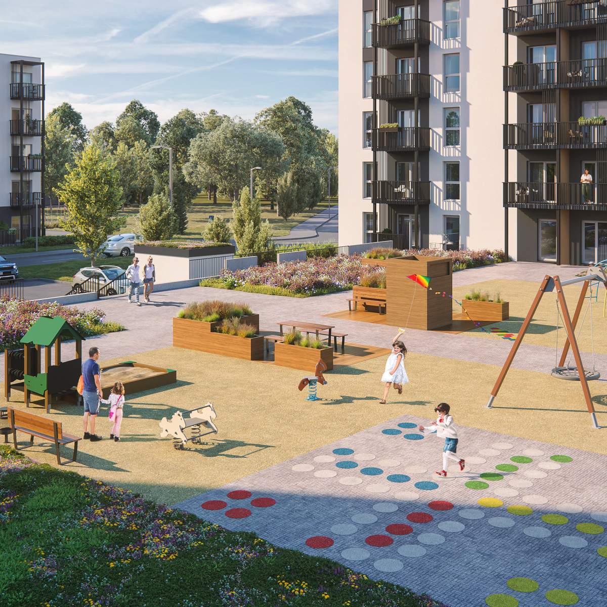 Жилые дома Järveotsa Kodud объединяет расположенная между зданиями вдалеке от парковки уютная платформа, где находятся зоны отдыха и детские площадки. Здесь дети смогут спокойно играть со своими соседскими друзьями.