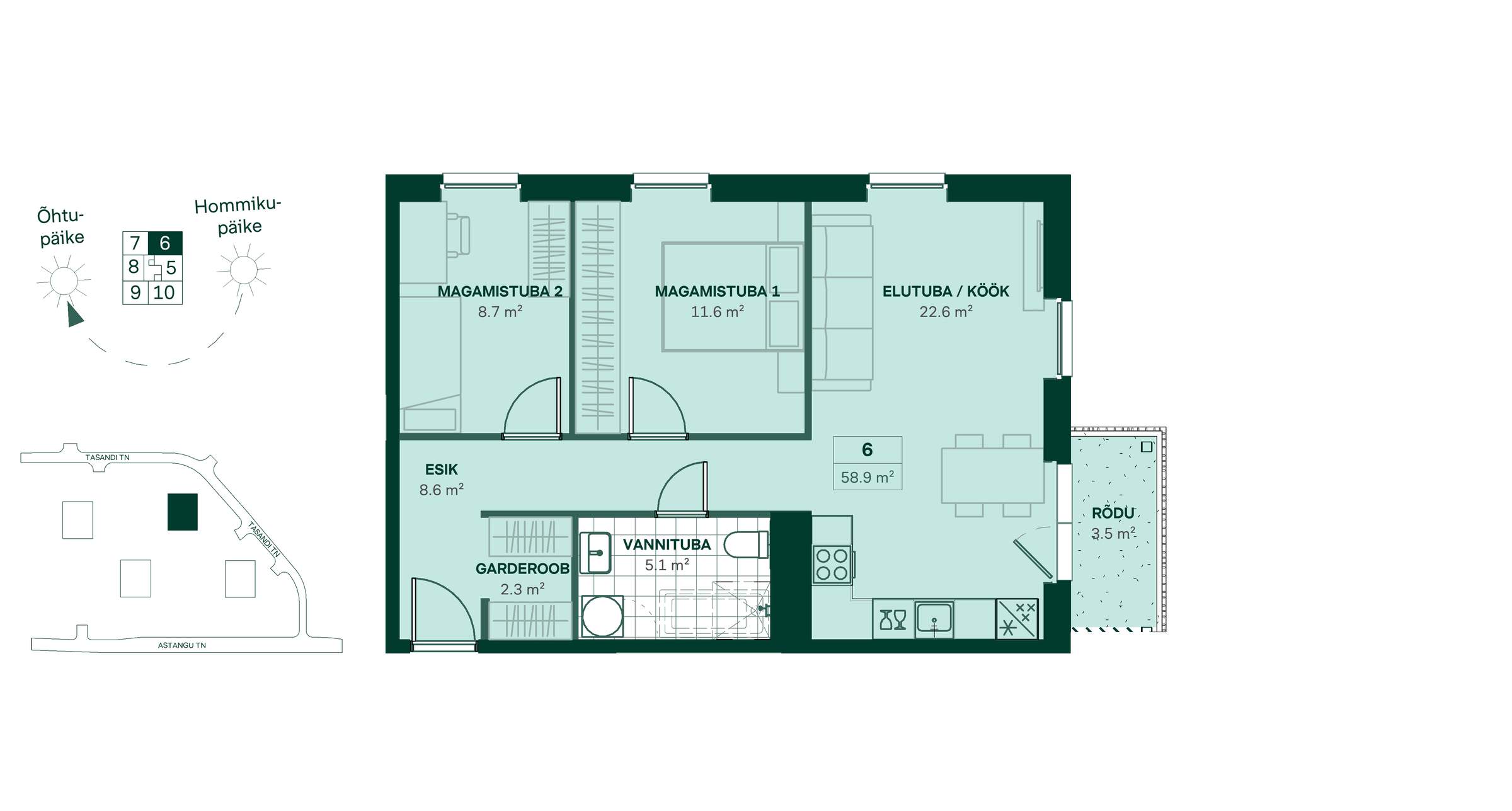 Tasandi 3-6, 3 комнаты, 58,9 м²