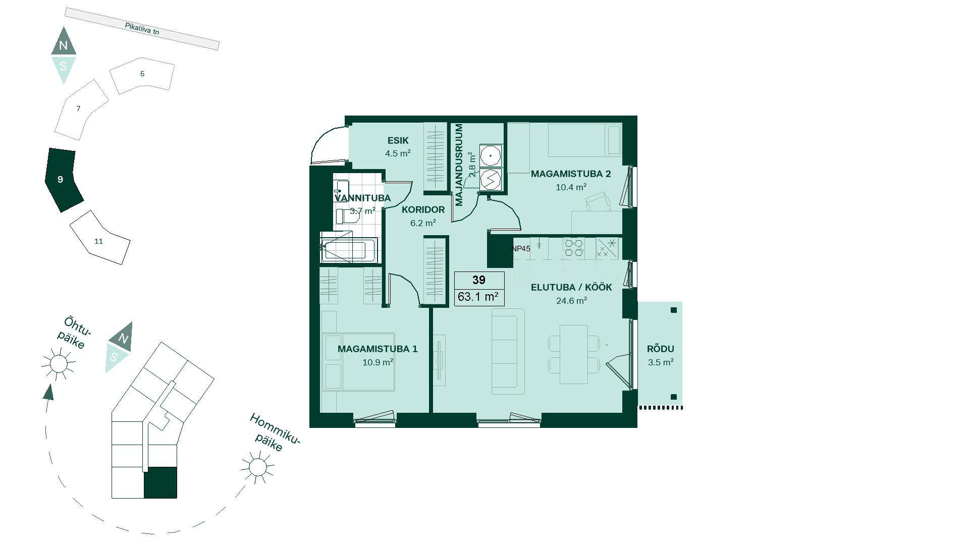 Pikaliiva tn 9-39, 3 комнаты, 63,1 м², 270 990 €