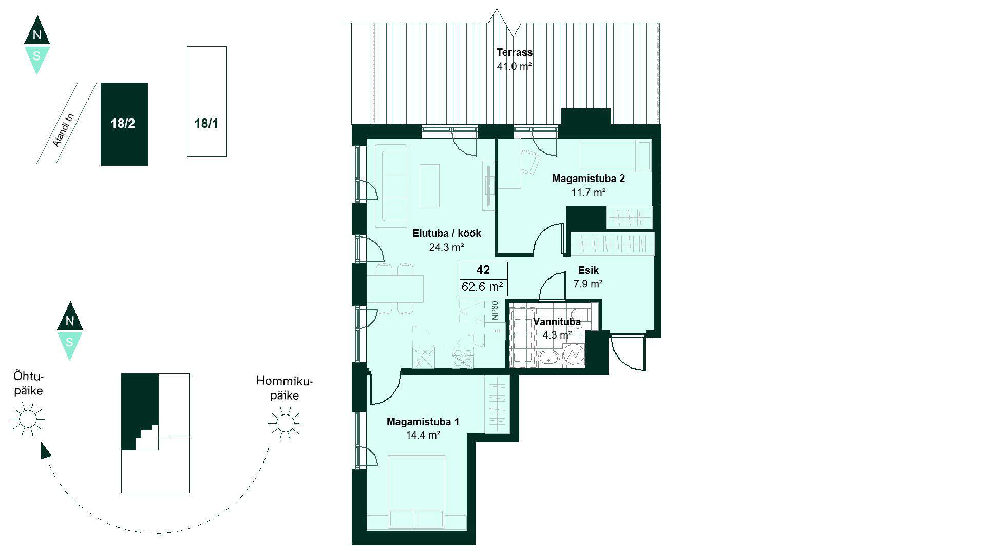 Aiandi 18/2-42, 3 комнаты, 62,6 м², 301 990 €